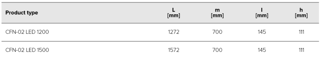 The fixture is made of UV-stable polycarbonate, with high impact and deformation resistance, and is resistant to dust, moisture, and water jets.